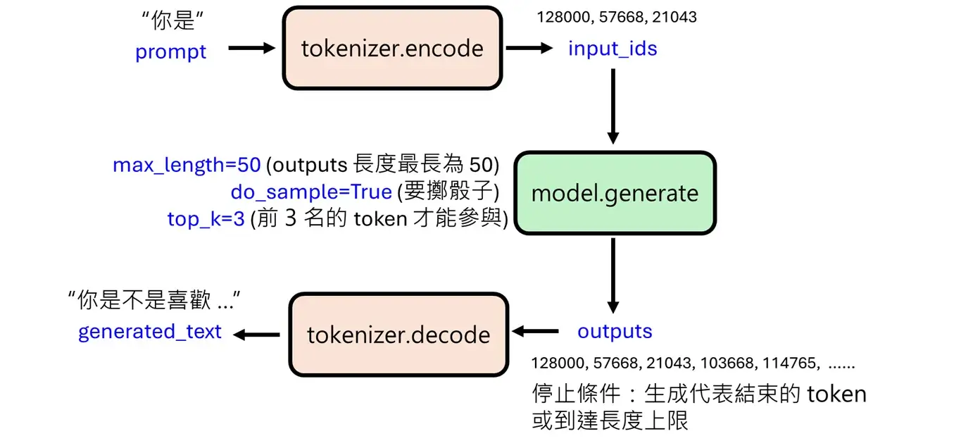 input_ids = tokenizer.encode(prompt, return_tensors="pt") # return_tensors="pt" 表示回傳 PyTorch tensor 格式