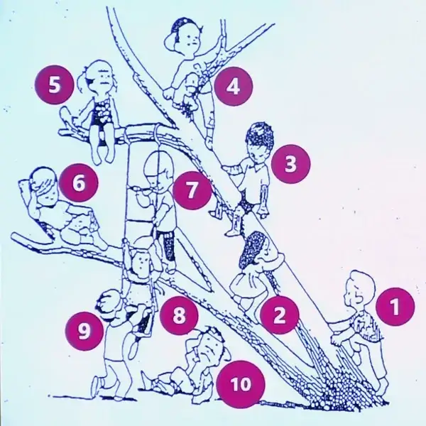 - 我觉得我像 3 号,因为我喜欢帮助别人,你看,3 号自己在爬树的同时,还在帮助爬的慢的 2 号;