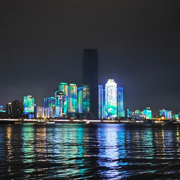 长江对岸的龟山电视塔。武汉的江畔夜间灯光秀确实不错,体现了武汉的繁华。