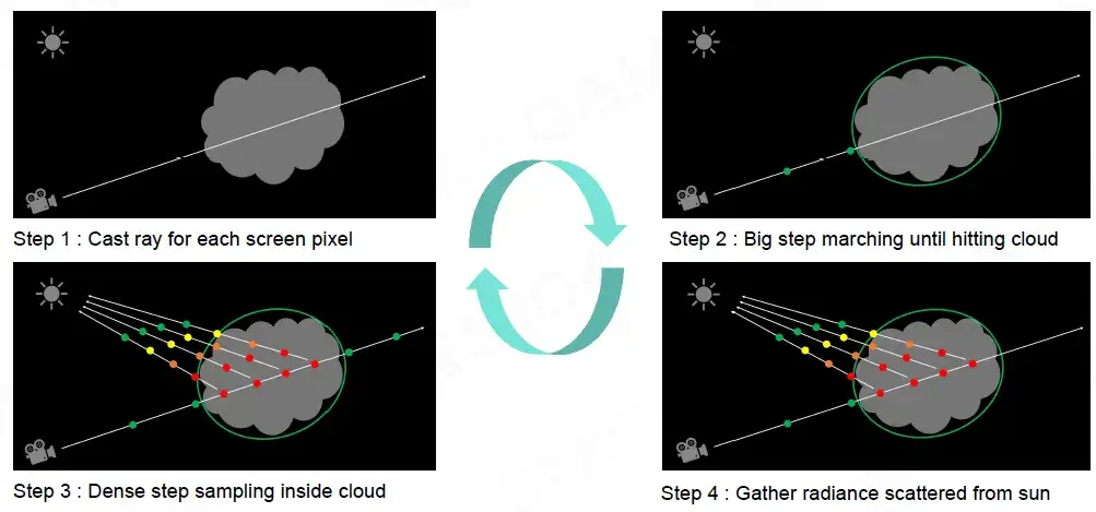 在 Cluster-based Rendering 中,场景被划分为多个子区域,每个子区域由一个计算节点负责渲染。这些节点之间通过网络进行通信和协调,共同完成整个渲染任务。每个节点独立地渲染自己负责的子区域,并将结果传输回主节点进行合成,最终生成完整的图像。