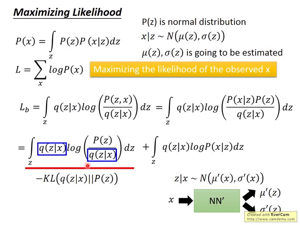 用最大似然估计法去估计 , 服从高斯分布, 也服从某个高斯分布,估计参数即可。同时我们需要另外一个分布 ,在 下的 的高斯分布参数。刚好可以看做 Encoder 和 Decoder。