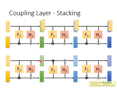 使用 Coupling layer,被用在两个知名的 flow-base 模型 NICE [1410.8516] NICE: Non-linear Independent Components Estimation (arxiv.org) 和 NVP [1605.08803] Density estimation using Real NVP (arxiv.org) 中。