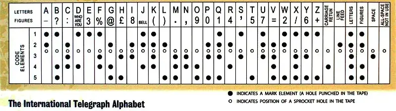 使用 Baudot Code(5 位编码)。