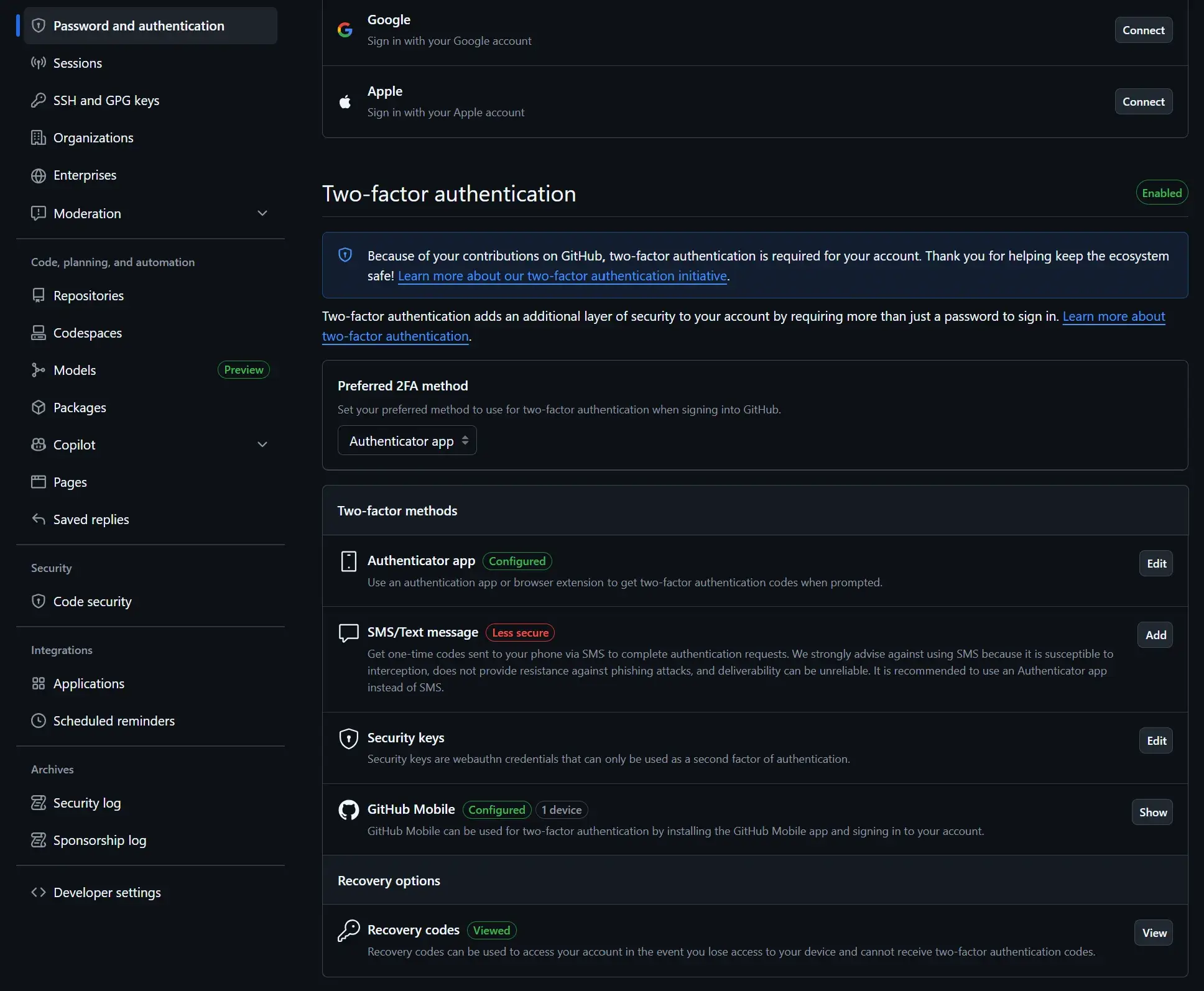Github 目前支持的 2FA: