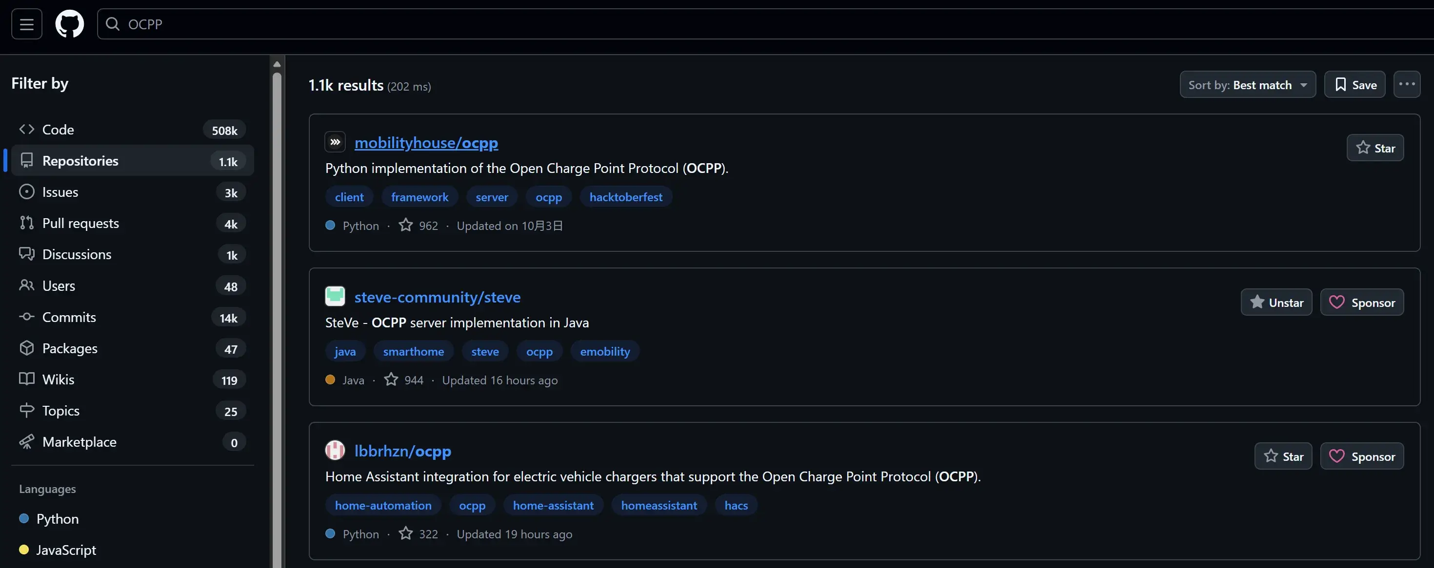 - Search:搜索相关项目
