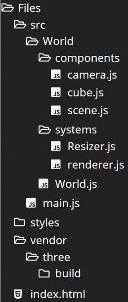 main.js world.js renderer.js scene.js camera.js cube.js resizer.js